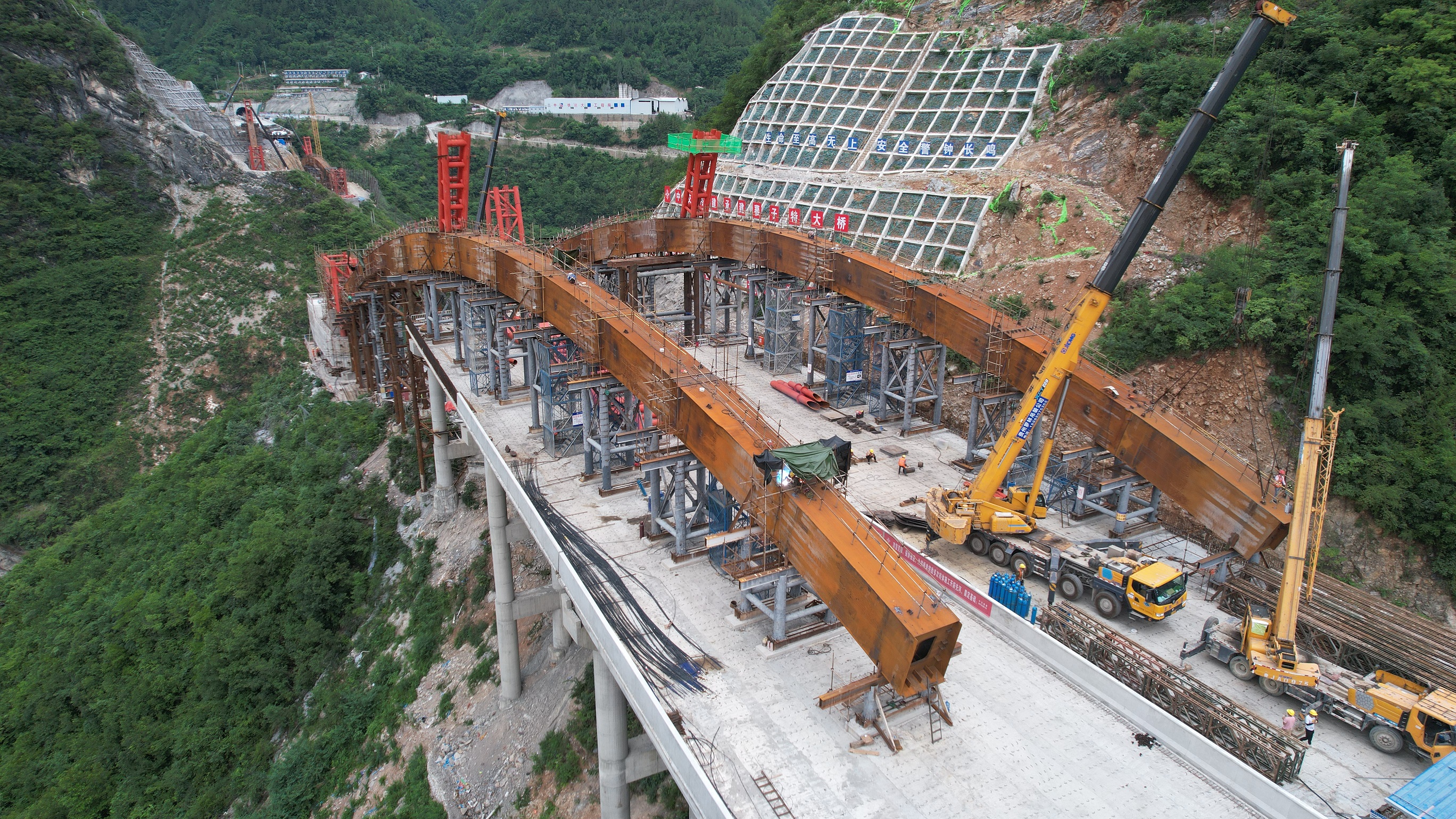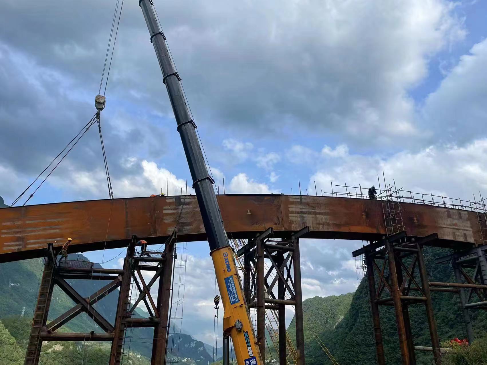 由中交路建承建、我公司負(fù)責(zé)制造加工、運(yùn)輸及現(xiàn)場(chǎng)焊接工作的城開(kāi)蓼子特大橋,歷時(shí)2個(gè)多月,克服重重困難,于2022年6月25日,在各參建單位及全體參建人員的共同努力下,城口岸、開(kāi)州岸左右幅拱肋順利完成吊裝,標(biāo)志著項(xiàng)目施工取得階段性勝利。