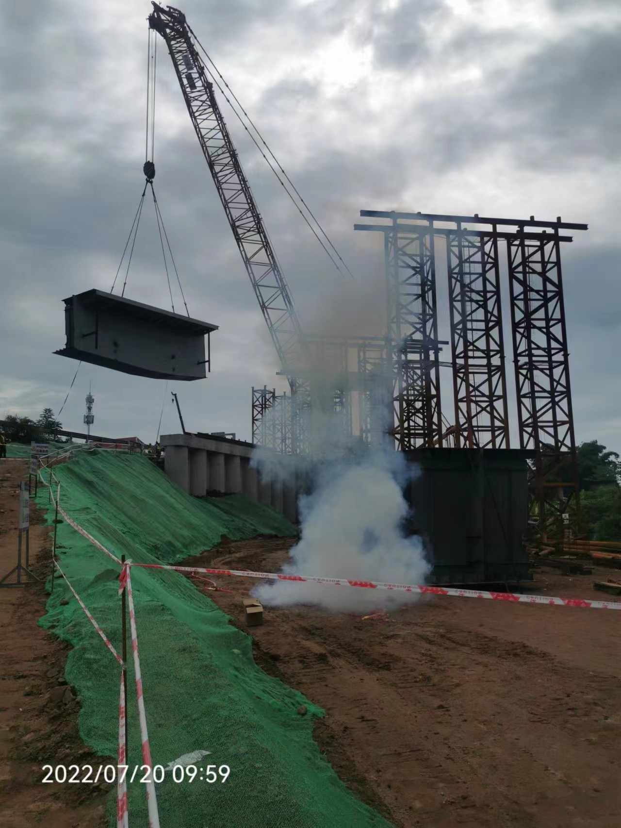2022年7月20日上午,在業(yè)主單位、甲方共同見(jiàn)證下,G93跨線(xiàn)橋首吊順利安裝完成,標(biāo)志著G93跨線(xiàn)橋順利地進(jìn)入了主梁安裝的第一階段。