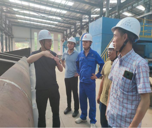 期間,公司領(lǐng)導(dǎo)親臨興天元鋼橋西北生產(chǎn)基地對(duì)祥瑞街大橋項(xiàng)目廠內(nèi)制造情況進(jìn)行檢查和指導(dǎo),對(duì)常駐西北項(xiàng)目的員工進(jìn)行了交流和慰問(wèn),強(qiáng)調(diào)了我司“橋梁重器,質(zhì)量為魂”的質(zhì)量觀,要求嚴(yán)格把控每件產(chǎn)品的質(zhì)量,同時(shí)做好生產(chǎn)過(guò)程中的安全管理工作。