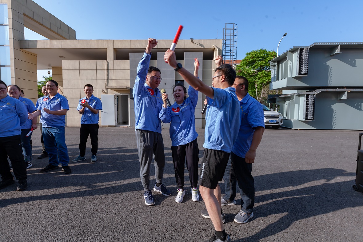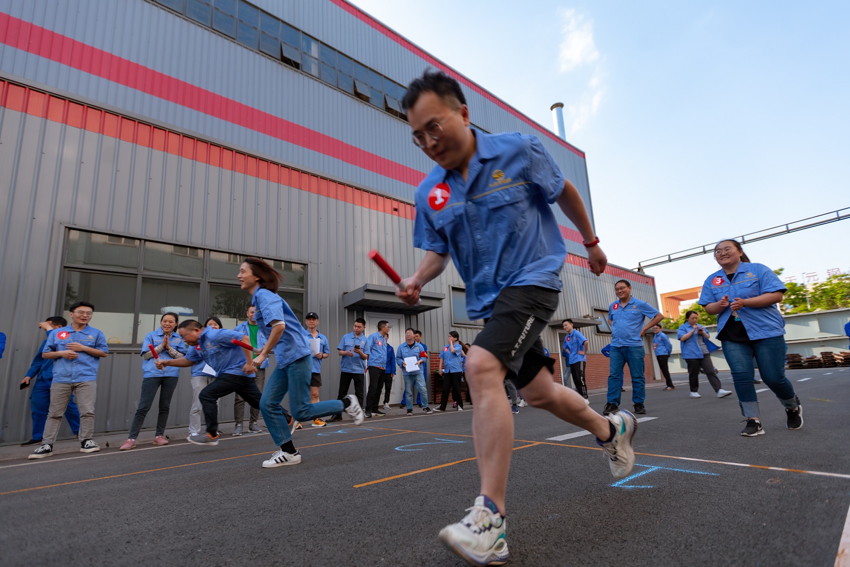 混合接力跑,共9支參賽隊(duì)伍。“預(yù)備—跑!”鄢總發(fā)出了口令?!凹佑停〖佑?!”的吶喊聲此起彼伏。起跑、加速......每一次的接力交棒,都傳遞著力量,凝積著希冀。