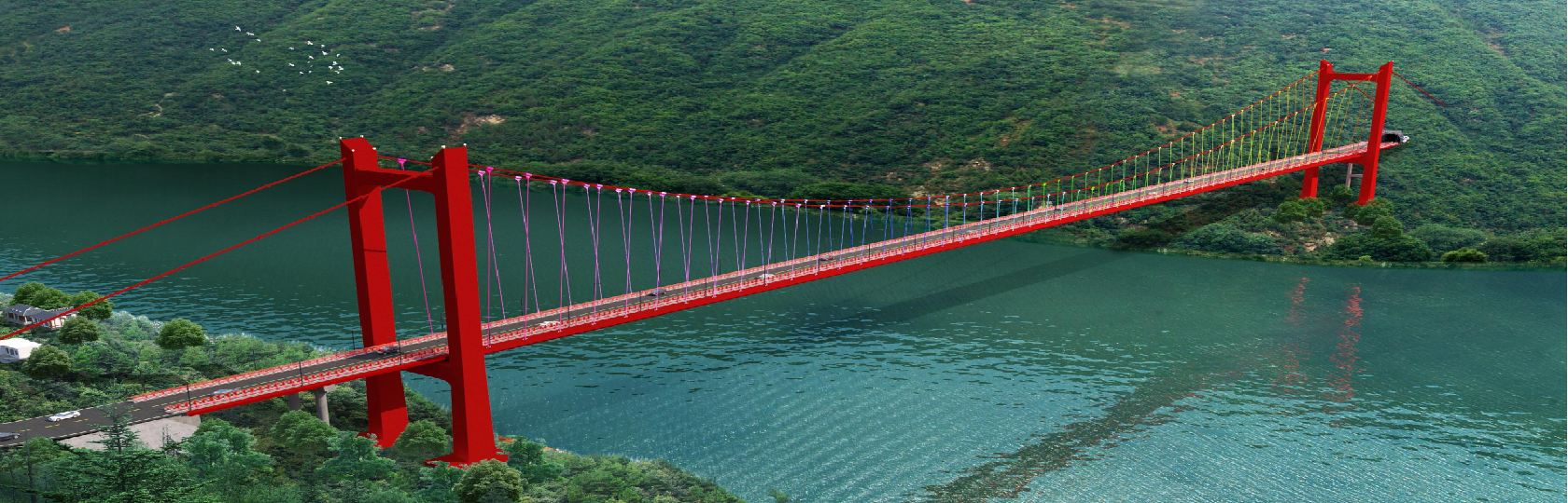 國(guó)道317線友誼隧道至映秀段改建工程線路全長(zhǎng)12.77公里,共設(shè)置四座橋梁三條隧道。其中紫坪鋪特大橋全長(zhǎng)589.53米,為主跨485米的單跨組合梁懸索橋,跨越紫坪鋪水庫建設(shè),是項(xiàng)目控制性工程。該項(xiàng)目的建成,將促進(jìn)區(qū)域經(jīng)濟(jì)協(xié)調(diào)發(fā)展,推動(dòng)四川阿壩州旅游等支柱產(chǎn)業(yè)發(fā)展,對(duì)提高區(qū)域應(yīng)急保障能力,改善民族地區(qū)生存與發(fā)展條件,實(shí)現(xiàn)鄉(xiāng)村振興發(fā)展和促進(jìn)民族團(tuán)結(jié)具有重要作用。我司負(fù)責(zé)國(guó)道317線友誼隧道至映秀段改建工程紫坪鋪特大橋加勁梁制造、安裝任務(wù)。加勁梁鋼結(jié)構(gòu)分為29個(gè)節(jié)段,橫向分為5個(gè)塊(段),總工程量約為2800噸。