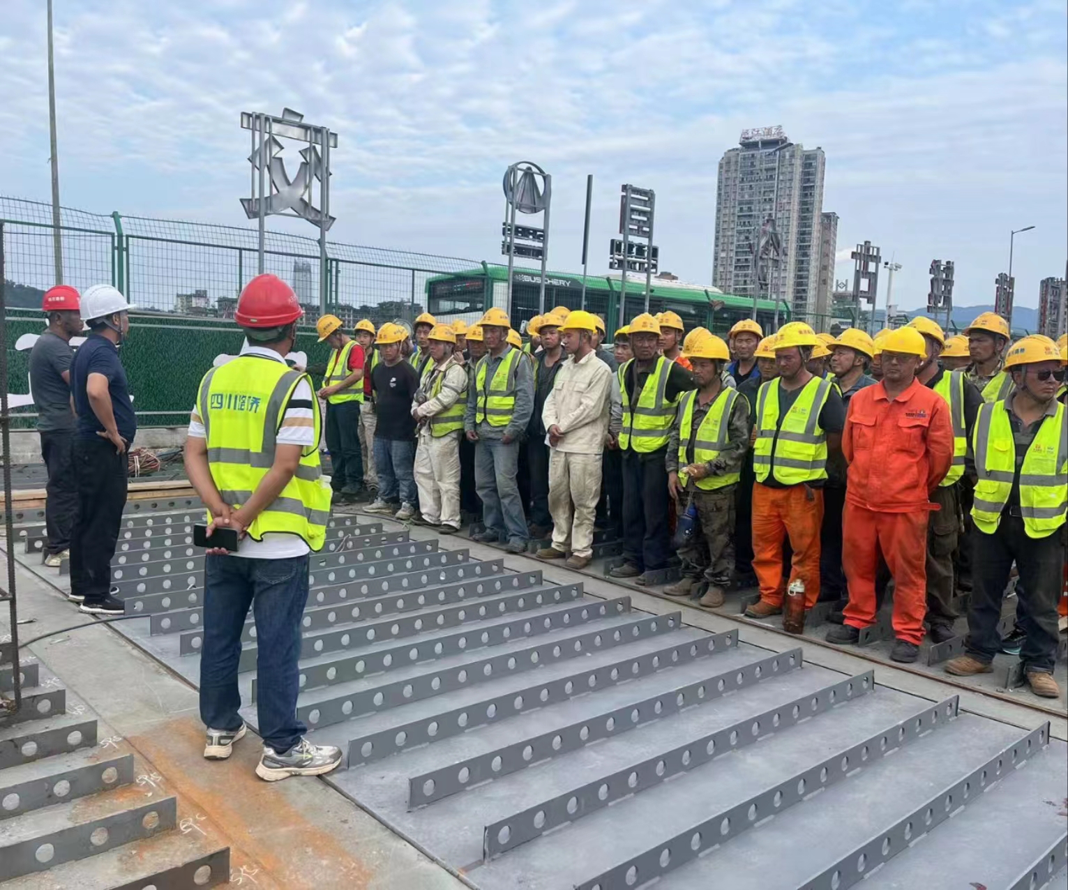今年6月是第22個(gè)全國“安全生產(chǎn)月”,活動(dòng)主題是:“人人講安全,個(gè)個(gè)會(huì)應(yīng)急”。根據(jù)公司《安全生產(chǎn)月活動(dòng)方案》要求,6月5日,工程部在宜賓岷江大橋項(xiàng)目舉行了2023年“安全生產(chǎn)月”活動(dòng)啟動(dòng)儀式,活動(dòng)由工程部經(jīng)理曾志輝主持,參加此次活動(dòng)的成員有工程部項(xiàng)目經(jīng)理郭強(qiáng)和鄧小剛、公司環(huán)安部安全員陳勇、勞務(wù)合作方負(fù)責(zé)人唐菱以及宜賓岷江大橋項(xiàng)目施工隊(duì)全體成員。